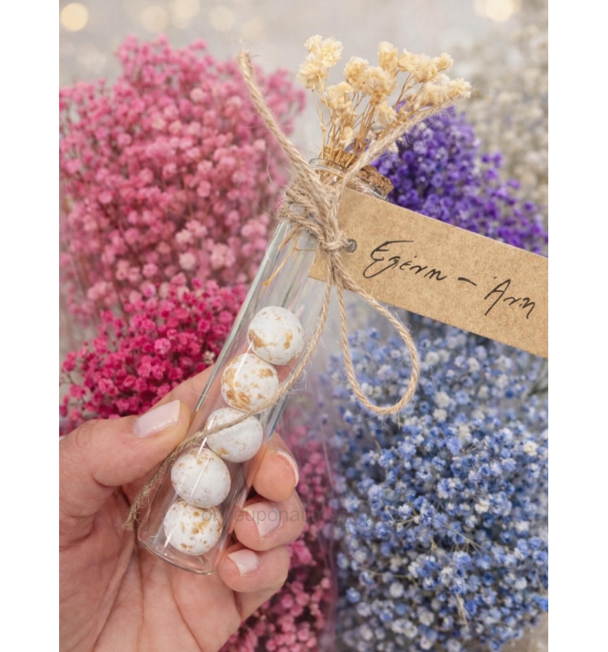 Μπομπονιέρα με ανθάκια σε διάφορα χρώματα έτοιμη δεμένη