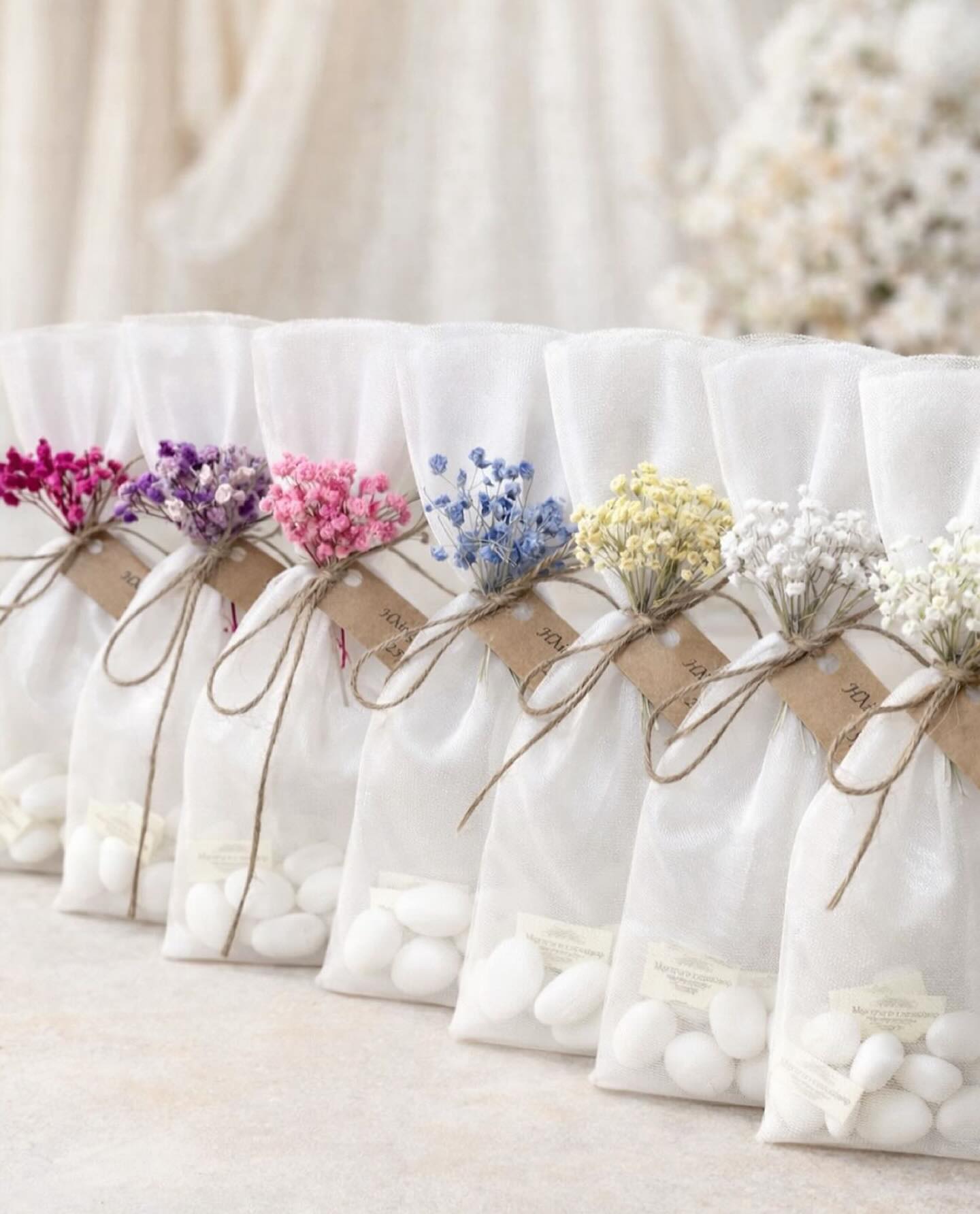 Μπομπονιέρα με ανθάκια σε διάφορες αποχρώσεις.
