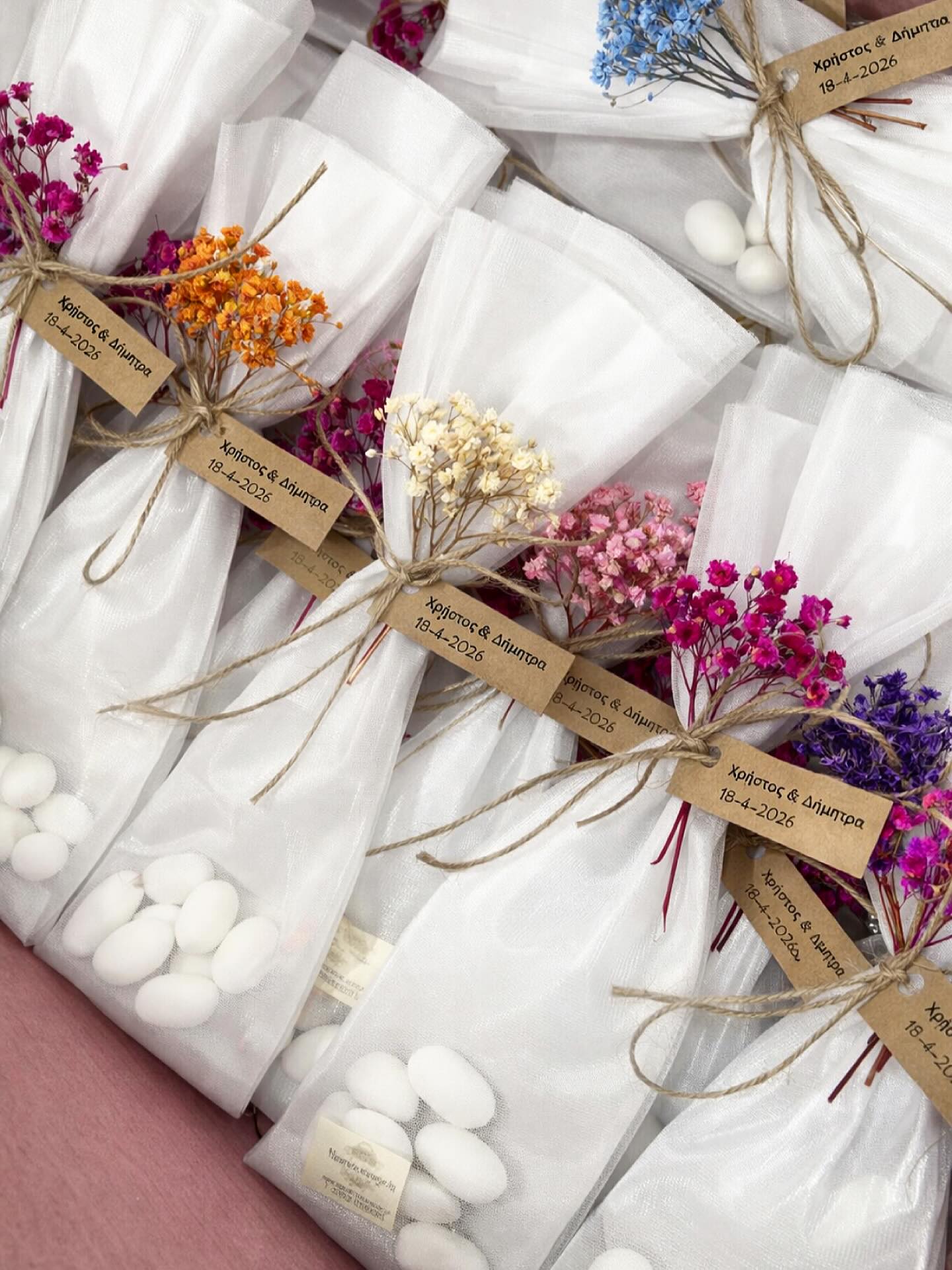 Μπομπονιέρα με ανθάκια σε διάφορες αποχρώσεις.